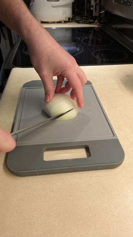 This is hands down the best knife that I have ever used. It is designed phenomenally well, is made of high quality materials, is weighted perfectly, and has the perfect edge to cut through a variety of foodstuffs. I eat a plant-based diet so I can’t speak to how well this knife works with seafood, meat, or poultry but I can speak to how it cuts fruits, vegetables, and herbs like a dream. This knife puts all of the other knives in my kitchen to shame and I can’t speak highly enough of this knife. No matter what I have to slice, dice, or chop, this knife makes quick work of whatever task I have at hand in the kitchen. I will definitely be buying more items from this brand in the future because I am blown away with the quality of this knife. 10/10 I cannot recommend this knife highly enough.