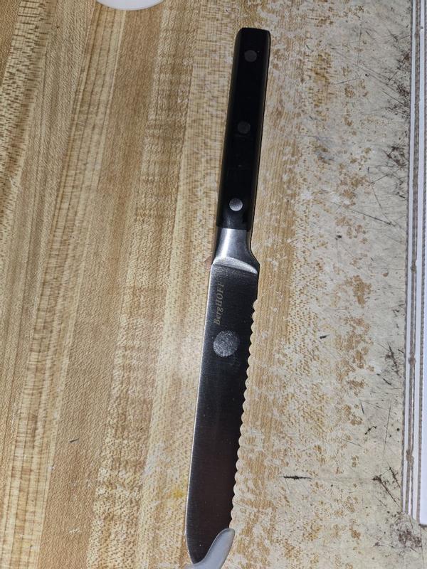 Extremely sharp and beautiful bread knife. Perfect length and balance, sharp enough to cut even and precise slices every time. Feels very sturdy and seems to be very well-made. Would definitely recommend.