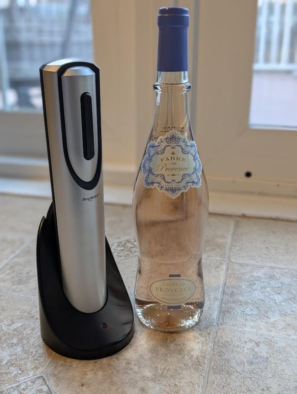 What a neat device!!! The BergHOFF Geminis Rechargeable Electric Wine Opener is something that I did not know I needed up until now. Struggling with a hand crank cork screw? Broken corks? Never again! This device comes with a foil cutter, so simply cut the foil off your bottle, place the device over the top of the bottle, then press the down arrow until the device turns off. ITS THAT EASY! It automatically pulls your cork out and then you only need to reverse the screw and your cork pops right off of the device. The hassle of struggling with your wine after a long day of work or while your friends/company are over is eliminated by having this ready. An absolute must have for wine drinkers.