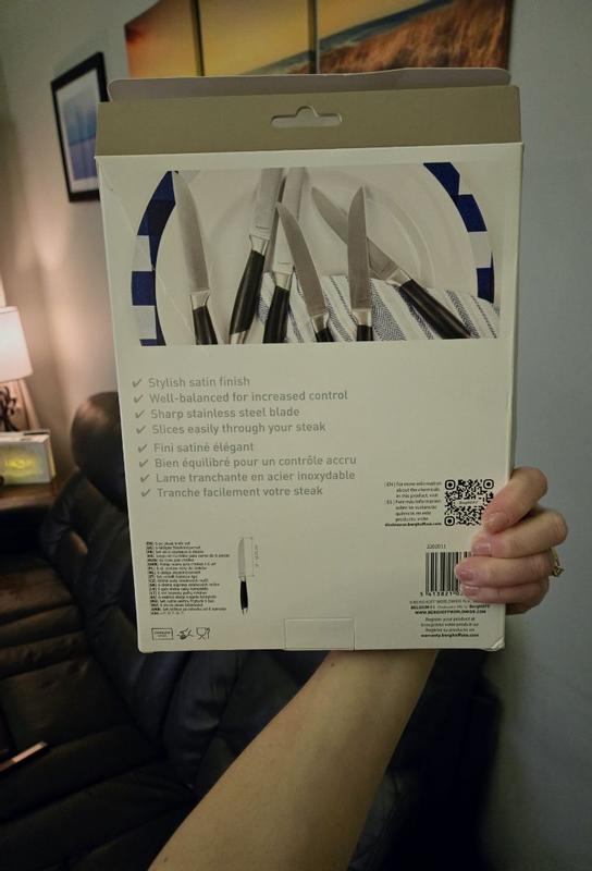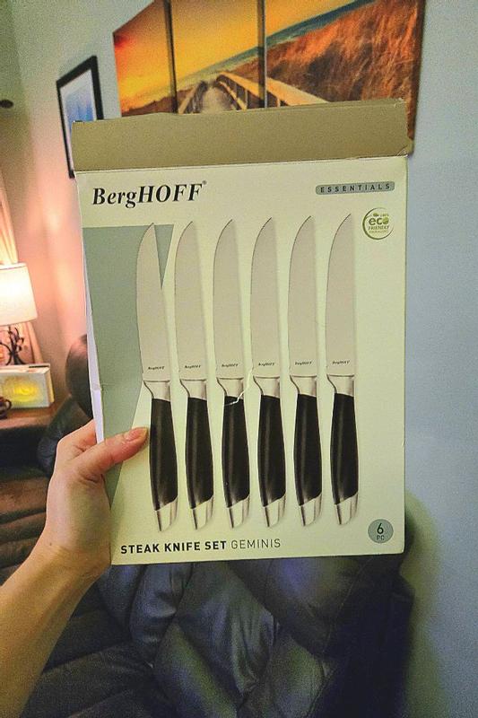 Influenster and BergHOFF sent me this 6 pack of steak knives complementary for testing purposes and my honest review. I truly expected these to be mediocre—and they proved me wrong. 😅 I tested a knife by using it to cut my steak dinner, and to my surprise, it sliced smoothly through the steak. The cuts were so clean through the steak, I was highly impressed. While the knives are rather heavy, they are unbelievably beautiful at cutting food. I will continue using them and would consider buying more BergHOFF kitchen utensils and products.