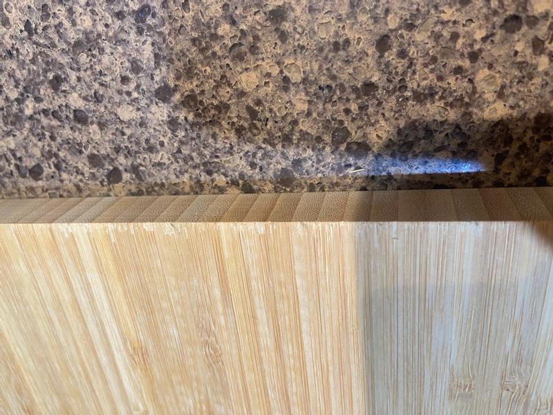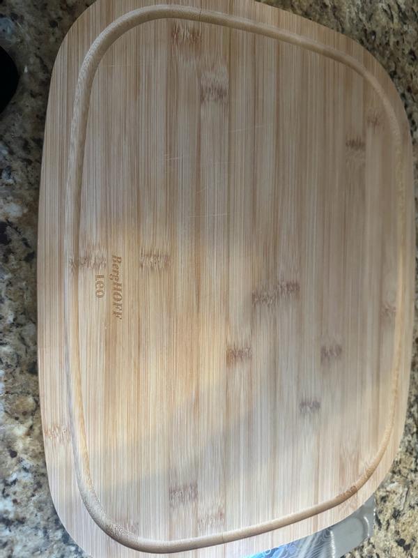 This cutting board feels really stable on the counter and doesn’t slide around while using it. The bamboo material has a smooth, pleasant texture and feels sturdy without being too heavy. It’s easy to clean, doesn’t hold onto odors, and has been low-maintenance so far. Overall, it feels well made and practical for everyday use.