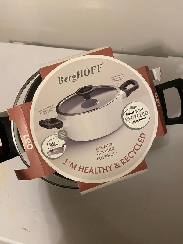 BergHOFF Leo Glints Nonstick Recycled Aluminum Stockpot is a pretty light grey and black handles. This pot was definitely made to sustain just about anything. It’s the perfect size for a nonstick covered casserole. The fact that it’s made from recycled aluminum makes me want more of their products. I love a company that stands for something and has quality products.