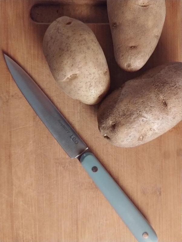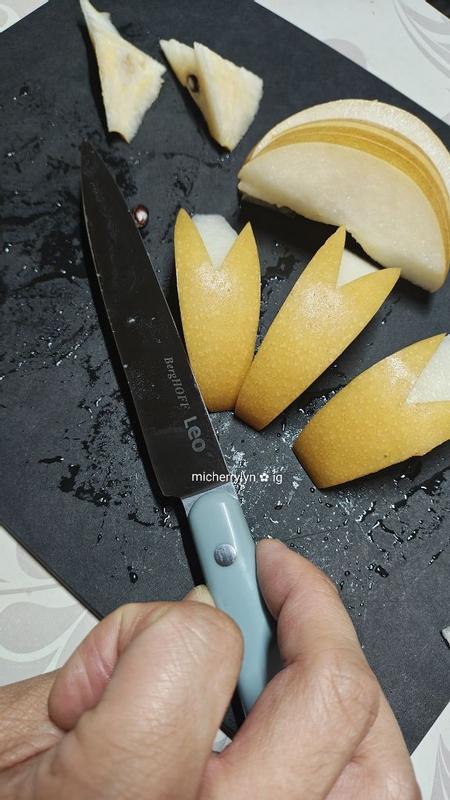 I absolutely love this BergHOFF Leo Slate Stainless Steel Utility 5" Knife for once I don't dread chopping food up and that's all thanks to this knife 🔪 It makes meal prep so easy! The blue handle fits comfortably in my small hands. The blade is super sharp, I don't have to use any force when chopping things up this knife glides through everything. I use it everyday to chop up apples, potatoes, chicken and so on. It washes well without any staining occurring on the stainless steel blade and even after daily use the sharpness hasn't dulled. It's extremely durable, I've accidentally dropped it numerous times and it's still in perfect condition. This is my favorite little knife, I want the entire BERGHOFF knife collection now. If you're an avid cook, you need this in your kitchen!