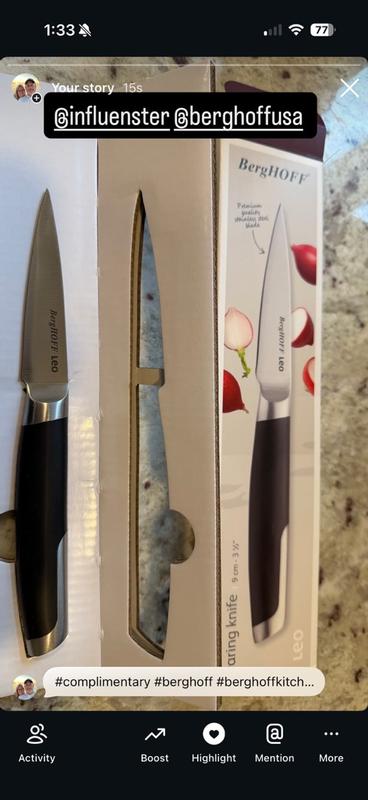 This BergHOFF Leo Graphite Stainless Steel 3.5” Paring Knife is great quality! It is so sleek and great quality with a fantastic non-slip grip. It is sharp and cuts like butter, I can’t wait to continue to cook with it!