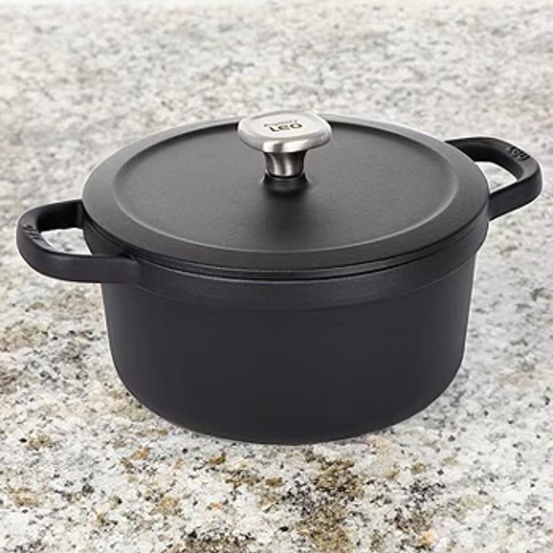 What a great cast iron stockpot. Very versatile. Can be used on the stovetop and oven too. Cooks food evenly. Perfect size for my family of 3. Easy to clean and does not scratch.