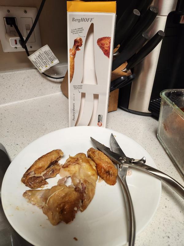 I’ve been using the BergHOFF Legacy Stainless Steel Poultry Shears for a while now, and they’ve quickly become one of my most-used kitchen tools. The first thing I noticed was how sharp they are — they cut cleanly through poultry and even small bones with very little effort. There’s no tearing or crushing of the meat, which makes prep much faster and neater. The shears feel very comfortable in hand thanks to the ergonomic hollow handle. They’re well-balanced, giving me great control while cutting, and I feel safe using them even for tougher tasks like portioning whole chicken or cutting through crab shells. The full tang construction adds stability, and the solid build feels durable and high-quality. Another big plus is how easy they are to clean. Food doesn’t stick to the blades despite their flat shape, and being dishwasher safe makes cleanup effortless. The stainless steel finish still looks great after multiple uses and washes. Overall, these poultry shears are sharp, sturdy, comfortable, and practical. They perform exactly as expected and are a reliable addition to any kitchen, especially for anyone who cooks poultry regularly. Perfect size!!! I highly recommended!