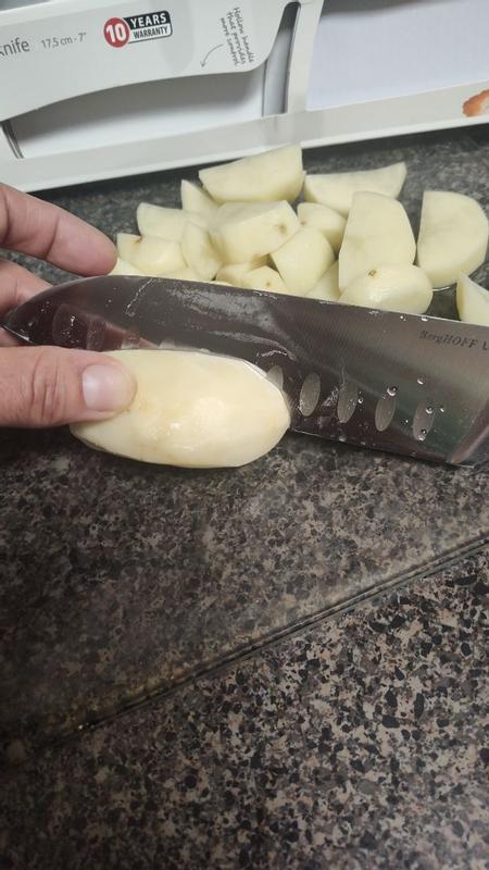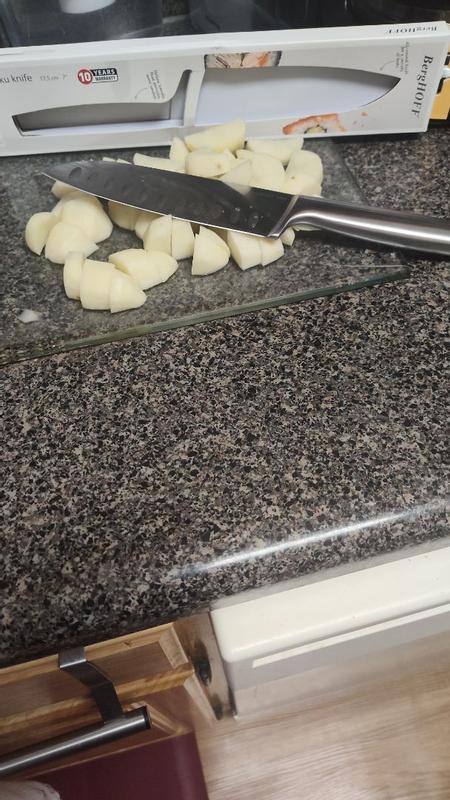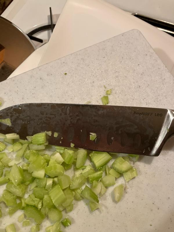 Extremely sharp very good looking knife. Berg hoff Leo legacy stainless steel Santoku Knife, 7 Inch. What I love most about this knife is how comfortable it is to use. The handle fits perfectly in my hand, making it easy to control the knife. This makes all the difference when I’m preparing meals. I absolutely love this knife. I do a lot of cooking, just about every day. It's perfect for chopping, each slice is like cutting through butter. The superb balance of the blade versus the handle makes it one of my favorite "go to" knives when I'm cooking and the overall look of it is beautiful! Overall, this is a fantastic everyday kitchen knife Sharp, comfortable, and reliable. Easy 5 stars. I received a free product for the purpose of my review. Opinions are 100% my own.