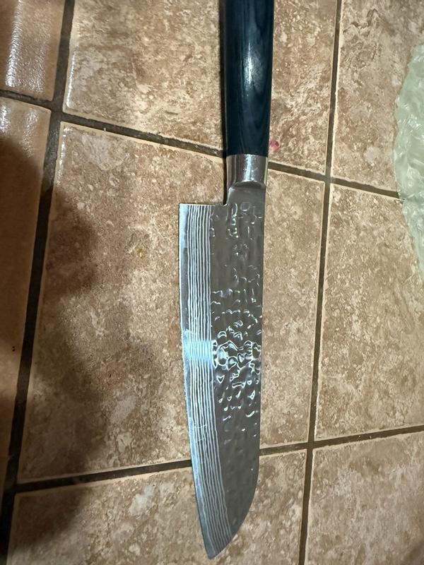 This is the sharpest knife I’ve ever owned, and the most beautiful! It feels so well made in my hand. The weight of the handle makes me feel like have more control than cheaper knives I’ve used. The details of the. Made and handle look and feel like premium craftsmanship. I guess I’m a real adult now! This knife is super sharp so be careful and happy cooking.