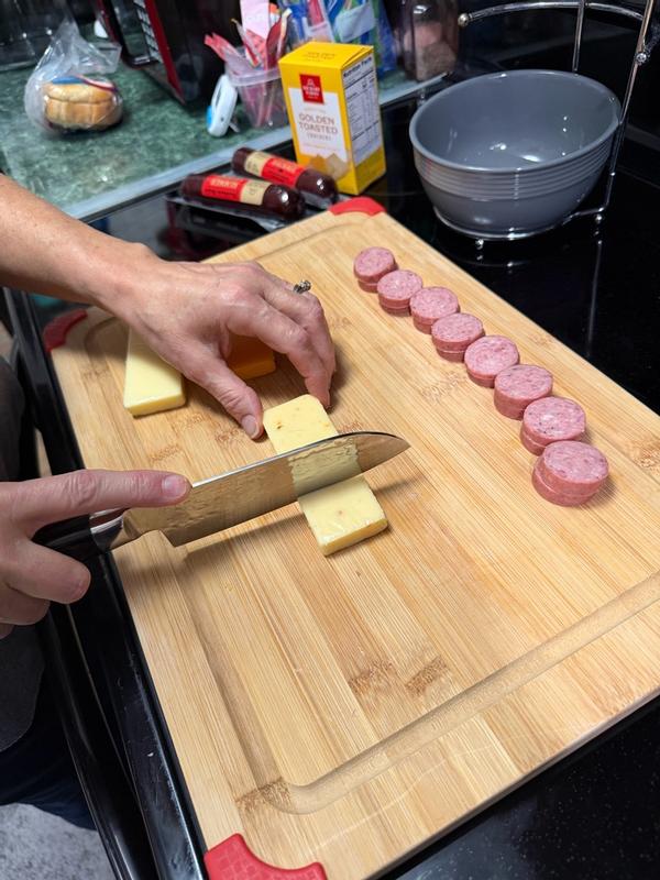 I am in love with this BergHOFF Martello 5.5" Cleaver. Not only is this a gorgeous knife with its hammer dot pattern on stainless steel, but it has an extremely sharp edge. I hate cutting tomatoes with a dull knife because I end up needing to press down too hard and I squish my tomato. This knife cut through it like it was warm butter. I was able to quickly dice my tomatoes, shred my lettuce, and cube up my cold chicken for a quick chicken wrap. It’s not at all heavy but it does have some good weight to it. It’s easy to grip and my hand doesn’t slide on the handle when it’s wet. This BergHOFF Martello 5.5" Cleaver is easy to clean (hand washed in hot soapy water) and it dries to a high shine.