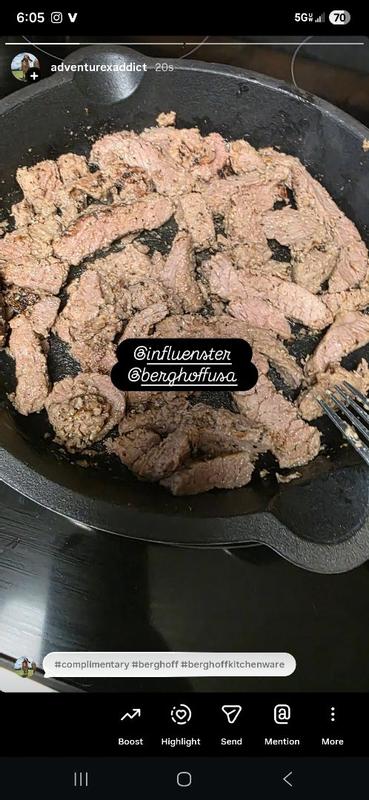 This BergHOFF Neo Cast Iron Fry Pan is great! It is so nice to cook the steak, potatoes and broccoli to perfection! So easy to season and to clean. I’d definitely recommend!