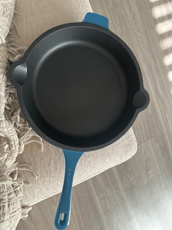 I’ve been using the BergHOFF Neo Cast Iron Fry Pan and I’m really impressed with the quality. The pan heats evenly and holds heat well, which makes cooking eggs, chicken, and veggies super easy. It feels sturdy and well-made without being awkward to handle. I love the blue exterior—it adds a nice pop of color to my kitchen. Once properly seasoned, food releases nicely and cleanup is simple. Overall, it’s a great cast iron pan for everyday cooking and feels like it’ll last a long time.