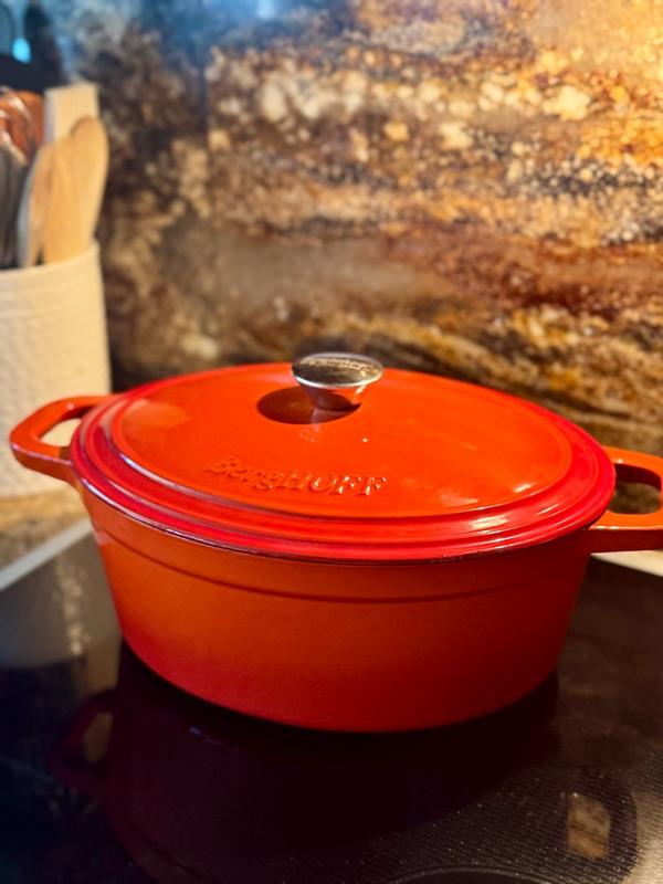 I absolutely love my new Dutch oven and the pink is so beautiful on my counter. I’m using it for baking bread and it comes out with a nice crust and a soft middle. Very happy.