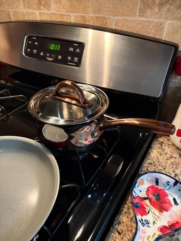 I LOVE this pan! Oh my goodness, I want the whole set now! This is so beautiful and well made. The quality is impeccable. It has a nice weight to it. Not too heavy, not too light. Very even heating and looks gorgeous on my stovetop! I highly recommend.