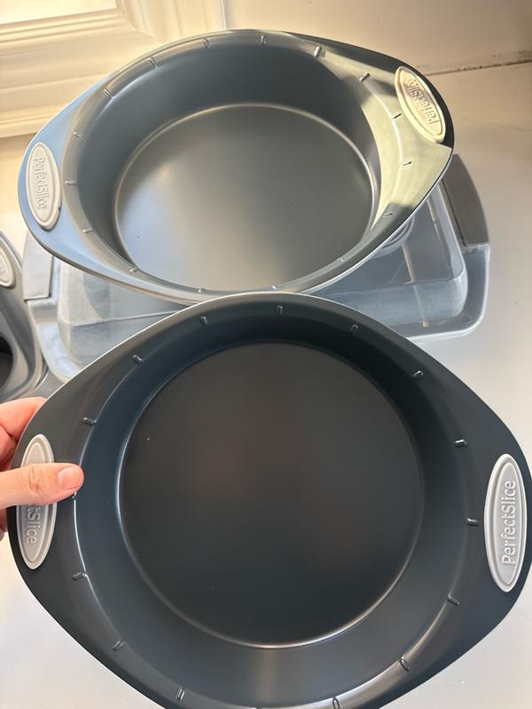 The berghoff 11pc perfect slice bakeware set is incredible! It really is no stick, just don’t use metal utensils on them. It also says no dishwasher and to hand wash only so that’s all I’ve been doing. They make slicing so easy- there are marks all around the pans to indicate where to slice to get the proportions that you want. The slicer is nice and cuts well- I love that it can be included on the lid to carry with you in the go! Very nice quality pans.
