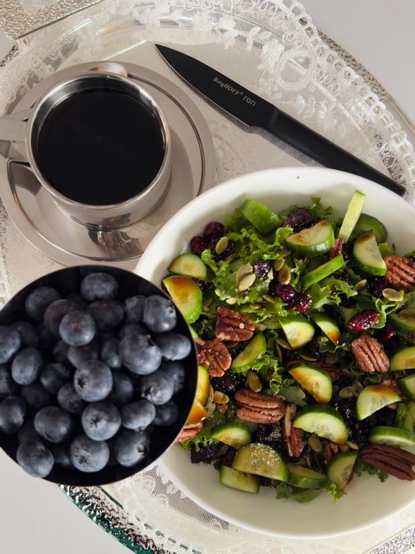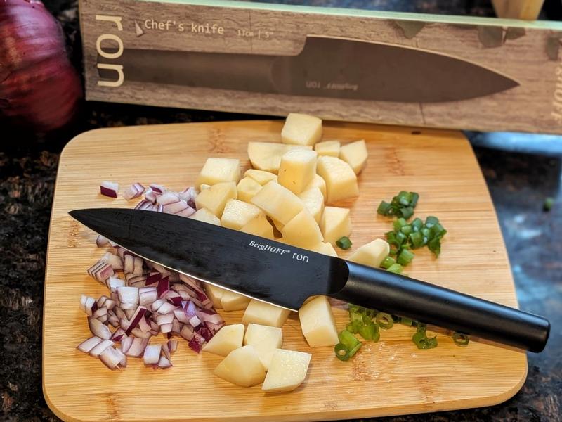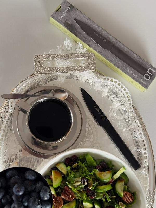 I recently added the BergHOFF Ron 9" Bread Knife to my collection, and it’s been fantastic. Aesthetically, it’s a 10/10—the matte black titanium coating gives it a modern, sleek look that fits in perfectly with the rest of my kitchen tools. Beyond the looks, it actually performs. I’ve used it on everything from crusty sourdough to delicate tomatoes, and it slices through cleanly every time without crushing the soft interior. It’s well-balanced, feels great in the hand, and the non-stick coating makes cleanup effortless. Highly recommend if you want a knife that looks as good as it works