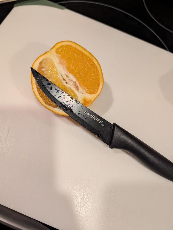 These steak knives are great, my first way I test a knife is by how well and how thinly I can cut a tomato and the knives did amazingly well. The design of the knives are elegant and beautiful with the size being just right to hold comfortably.