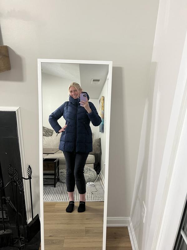 This jacket is shapely and flattering, and also snug and warm. What keeps it from 5 stars is it is tight across the chest while fitting perfectly everywhere else.