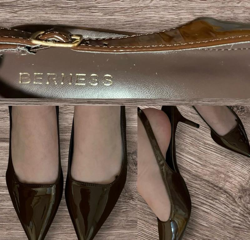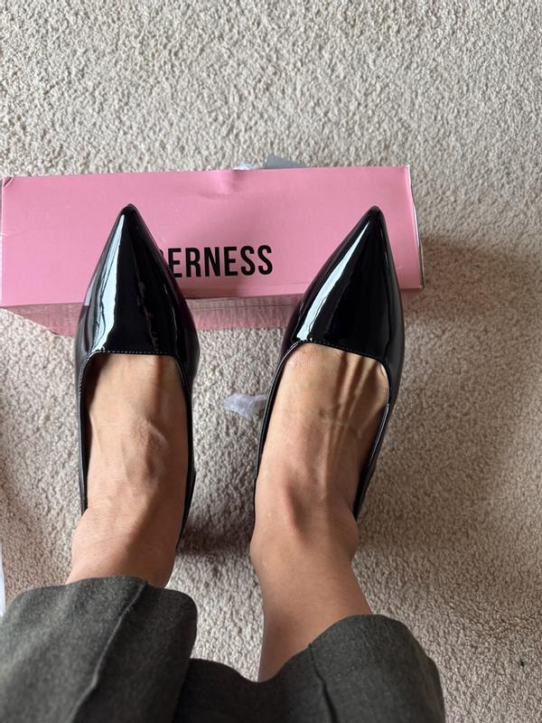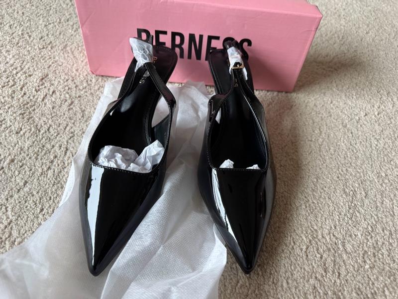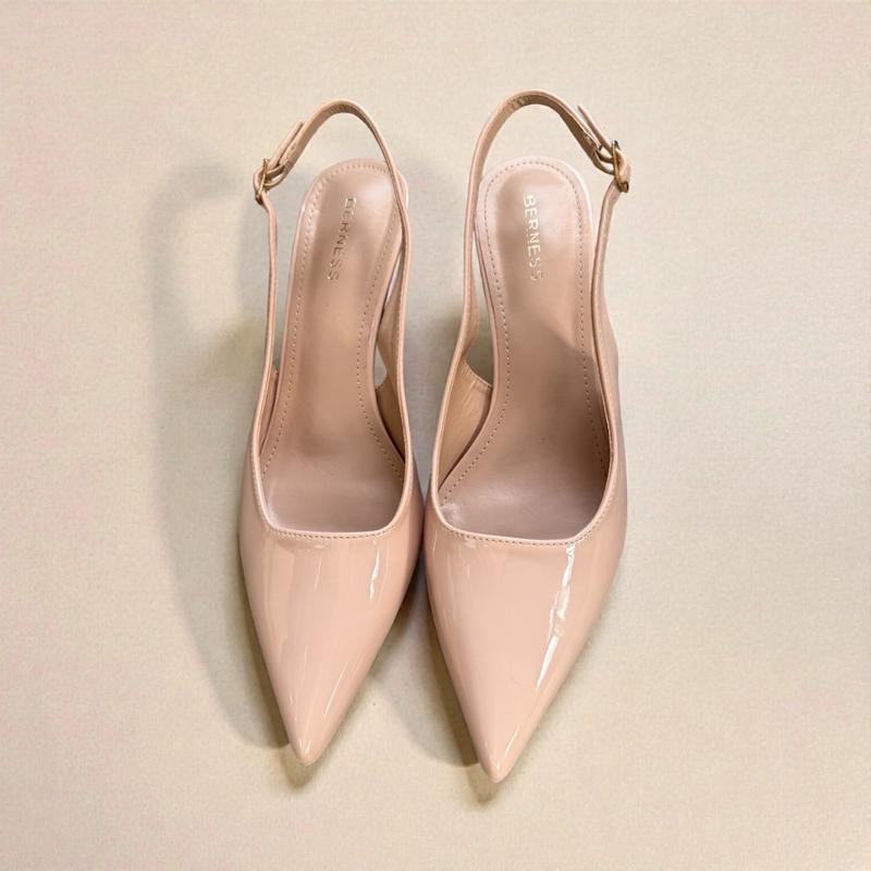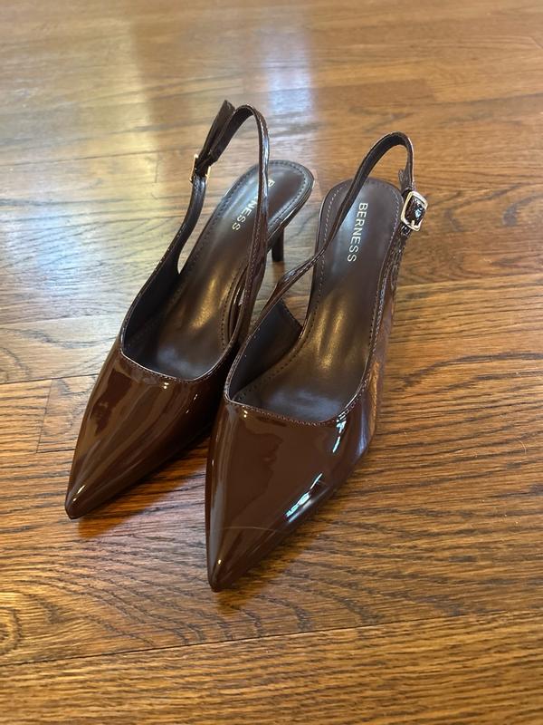 The Berness Fancy Patent Leather Slingback Kitten Heels in black are elegant and versatile. The glossy patent finish looks polished and pairs well with both workwear and dressy outfits. The kitten heel is the perfect height—comfortable enough for extended wear while still looking chic. The slingback strap keeps the shoe secure, and overall the design feels classic and timeless. The only downside is that the fit runs slightly large, so sizing can be a bit tricky. Otherwise, these are a great value for a stylish, low-heel option.