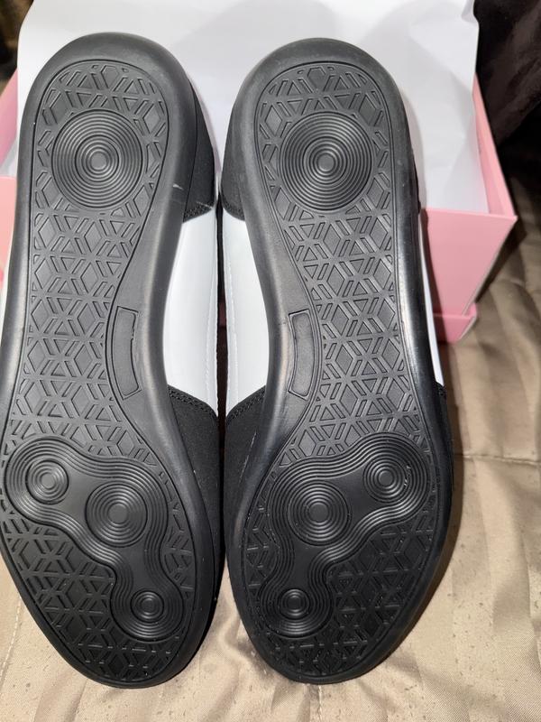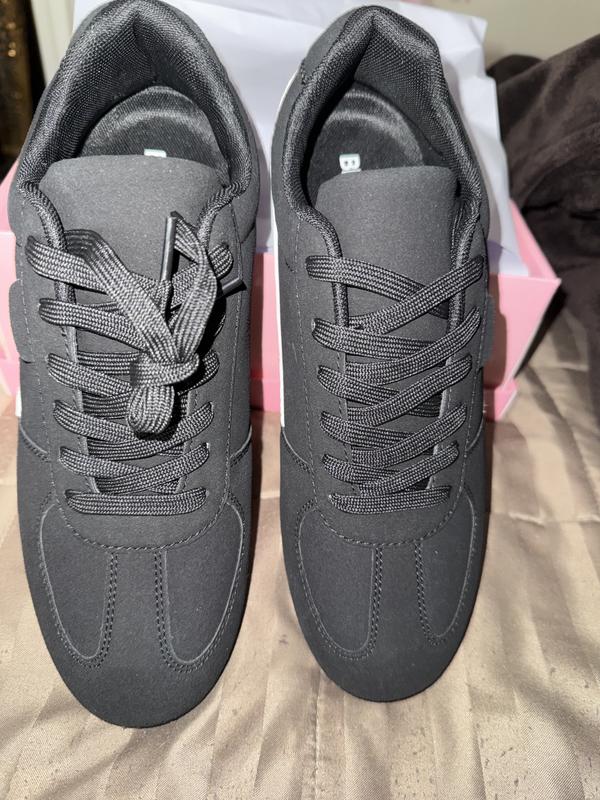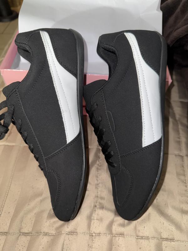 From the moment I saw these shoes online I knew that I was going to like them. Once I received the shoe and opened the box, I was so pleasantly surprised the shoe material is like a smooth Faux suede, with a wraparound, white stripe,the sole is a thin sole with a nice patterned etched into it. The sneaker is a lace up shoe, you can also just slide your foot into it without the untying it. The fit is snug and very comfortable, light weight and when walking in it, it feels good to walk in it. You don't feel like you're dragging around 2-20 pound weights. This sneaker is definitely worth purchasing and for sure you will get your moneys worth.
