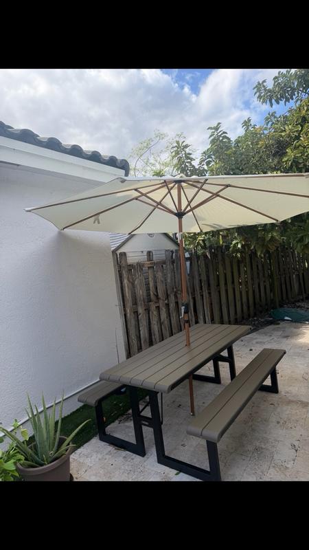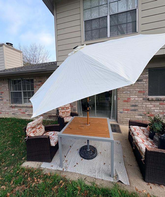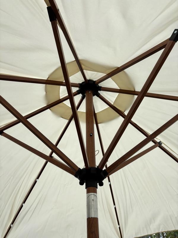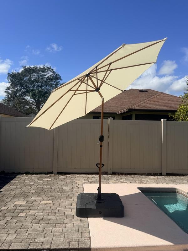 I am so impressed with the Best Choice Products- Woodgrain Pattern Solar LED Lighted Umbrella. This is in the shade Ivory. The functionality of this umbrella is pretty easy to use and set up. It has a good weight to it. The material of the umbrella is very sturdy and well made. I love the woodgrain pattern of the umbrella. It’s so pretty in real life. It is solar powered and the lights do light up underneath. I absolutely love it. Also love how it looks outside in my backyard!!