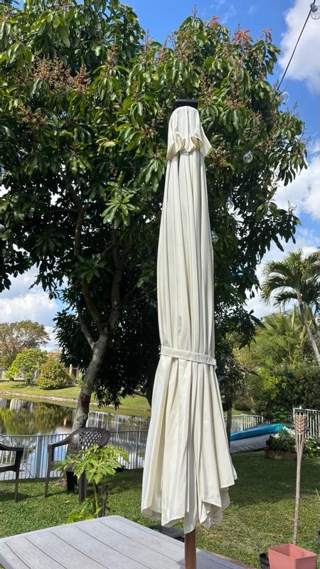 The quality of this umbrella is unbelievable. It is incredibly strong and sturdy. It has a lovely design and is aesthetically pleasing. The tilt function is great. But the cherry on top is the solar powered lights. It has an on and off switch and the lights add a great ambiance in the evening.