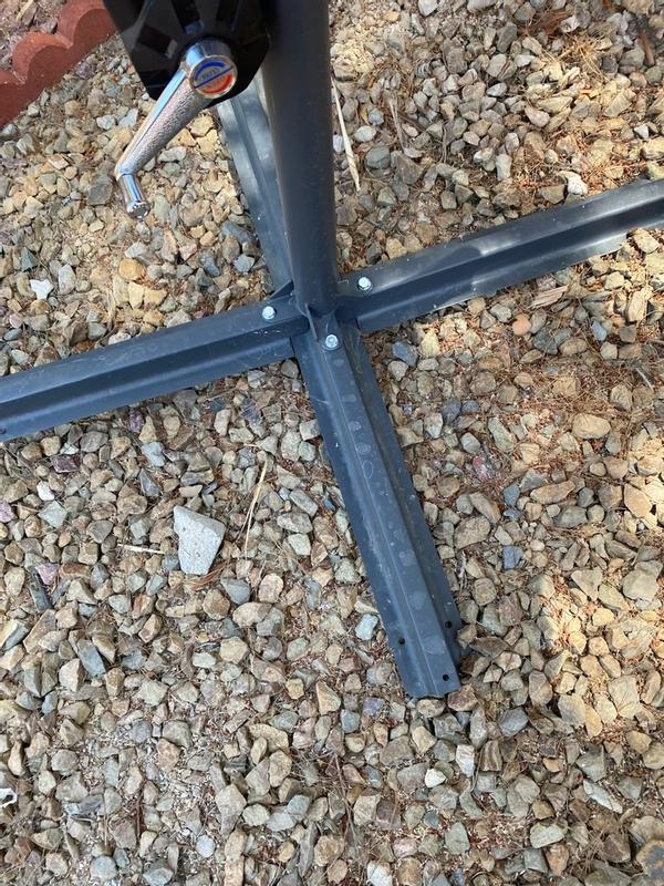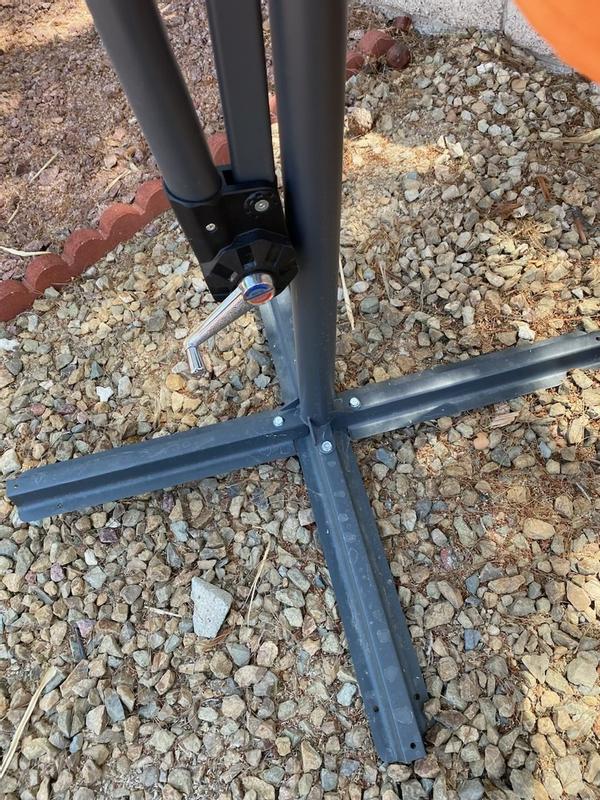 • ENHANCED STABILITY: A large wind vent allows cool air to flow through, while the cross base, 4 included ground stakes, and an extra pole knob add optimal support Note: Do not use without umbrella base weights. Recommended weight: 100lbs or more.
