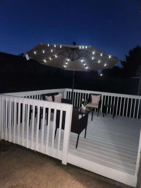We are thoroughly enjoying the outdoor umbrella.  It is easy to set-up. The umbrella lights operate with a rechargable battery and a small solar panel. There is a light switch on the underside of the canopy. I appreciate that it is well-made, and innovative.  Will definitely purchase Best Choice Products again.