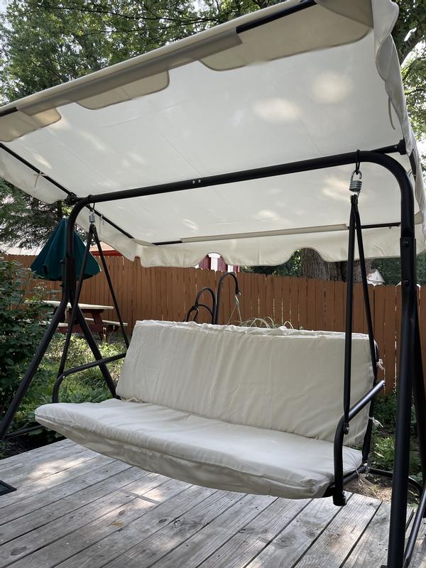 2-Person Outdoor Large Convertible Canopy Swing Glider Lounge Chair w/ Removable Cushions