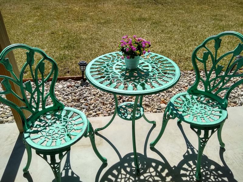 I absolutely love my new Bistro Set!!! It's gorgeous! And I am planning on buying a second as optional seating during outdoor parties. The color is so pretty too! Highly recommend!