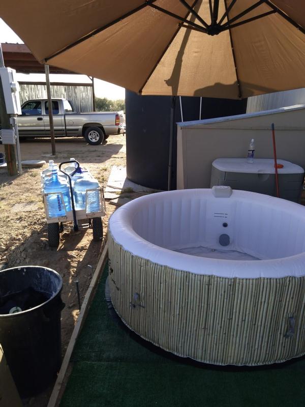 Filled up with water and still needed additional weight to keep the umbrella from falling over.