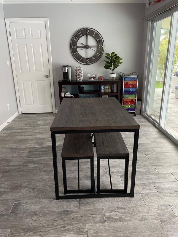 45.5in 3-Piece Bench Style Dining Furniture Set, 4-Person Dinette w/ 2 Benches, Table