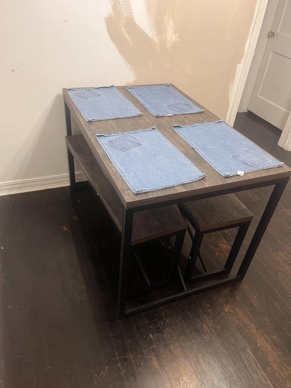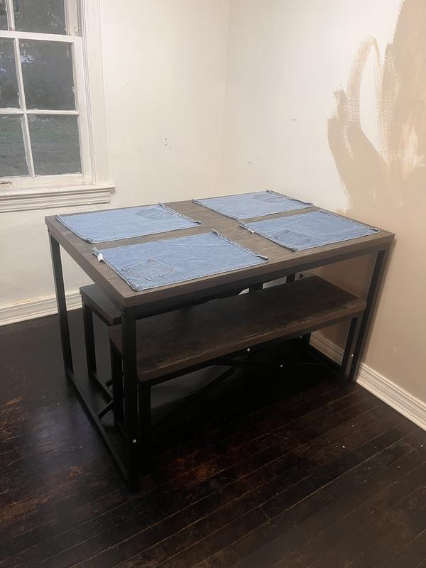 Excellent table. The bench storage underneath makes it perfect for small apartments or dining areas. Assembly was fairly easy but having two people feels like a must if only for holding. Great value I’m very happy with this purchase.
