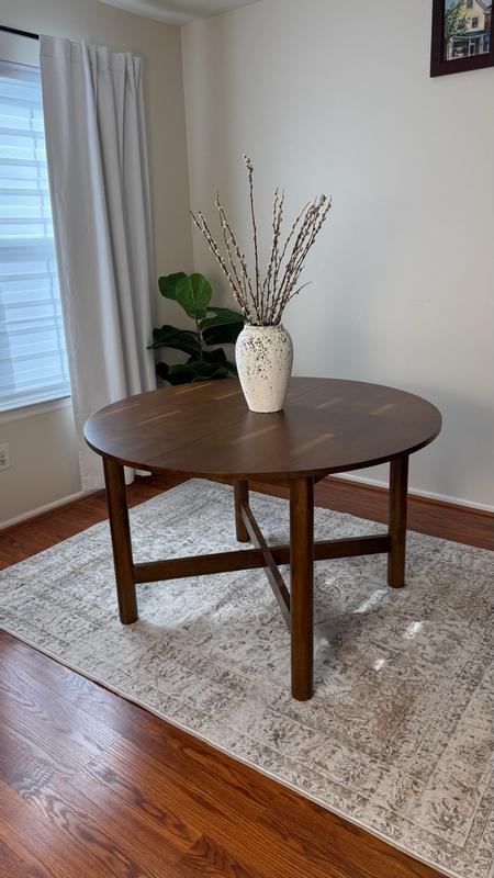 Influenster and Best Choice Products sent me this 47 in Round Sokid Woid Dining Table for free in exchange for my honest thoughts. This is a modern farmhouse style table for four. The oak colored wood is real quality. This table is sturdy and heavy, not the presswood they keep making these days. If youre looking for a kitchen table that is made of quality wood this is the table for you.