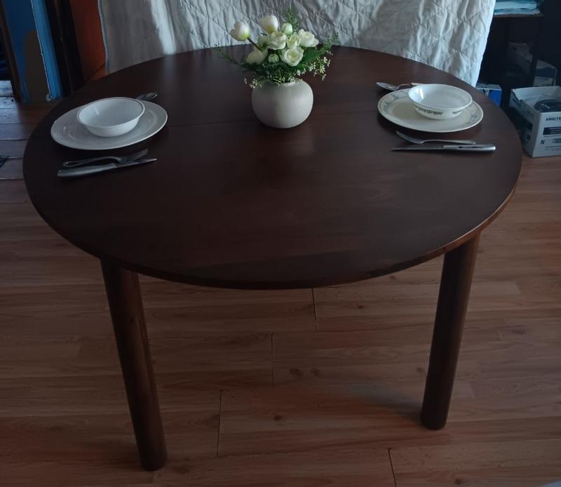 Really happy with this table. It’s solid, sturdy, and looks great in our space. The round shape is perfect for smaller rooms, and it comfortably fits four people. Easy to put together and feels well made. Overall, a great purchase.