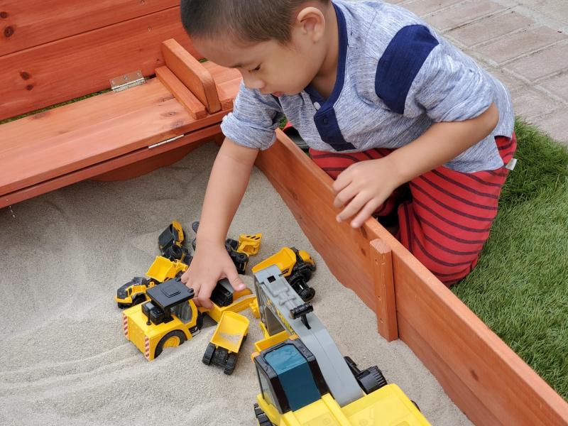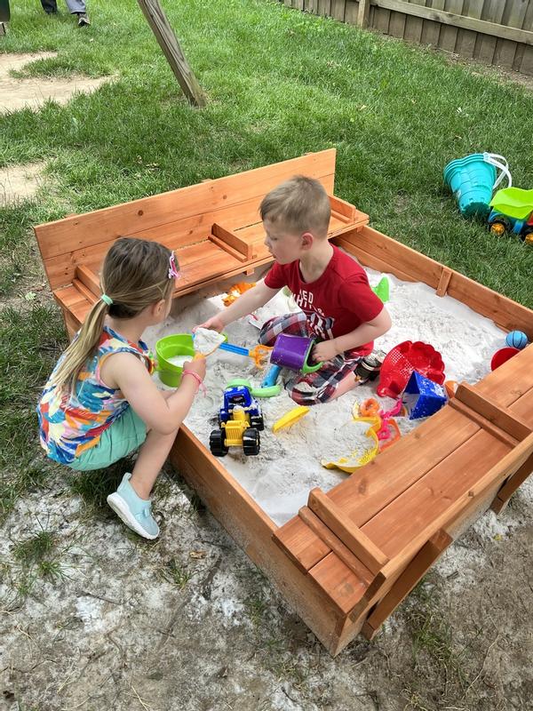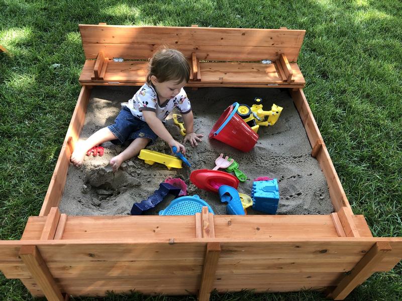 Great looking sandbox and the cedar is really quality, but the assembly was poor. Multiple pieces didn’t fit so we had to Jerry-rig in a few places. Also the bench pieces don’t fit to cover the sandbox completely. Overall disappointing purchase.