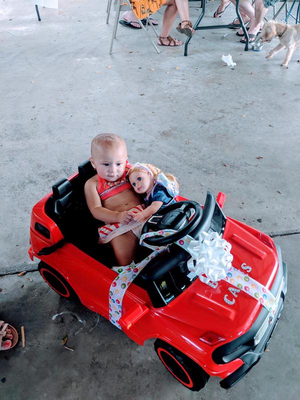 Great half birthday gift for our half birthday boy! 6 months old and cruising in his first car. Perfect size, fast shipping and simple to put together. It’s a perfect first car. It’s a cute and stylish one passenger car for a child who can sit up on their own. You can’t beat the price for a car with the features this one has especially the remote control.