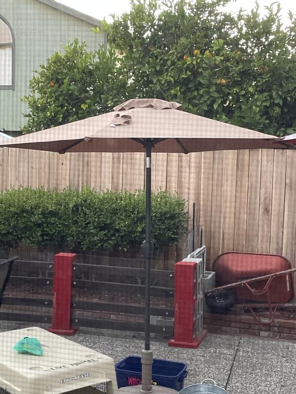 I didn't have much hopes for this when I ordered it (got it on sale) but I must say that I am more than pleasantly surprised, both by the quality of the umbrella and also how good it looks. I live near the coast, and as such there are some pretty hefty breezes that come through, but this umbrella hasn't budged an inch. It holds up to the sun and wind like it was made for that (go figure!) and comes with a crank to make opening and closing easy. Worked straight out of the box, once I fit the two pole pieces together. 100% recommend.