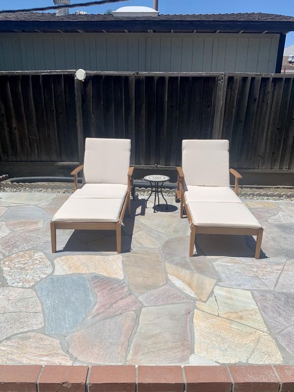 I loved the look of the chairs in the beginning, and the function is great, but they faded horribly in the sun within a few weeks. I ordered the Navy blue ones. The sun was Wisconsin fall sun that was not even bright. I flipped over the this summer, and sprayed with a sun protectant and they still faded horribly within less than a month. Would not recommend. Only on here to see if there’s anyway to get replacement cushions in a less fadeable color since they look so embarrassing.