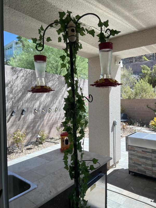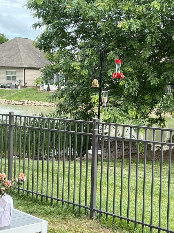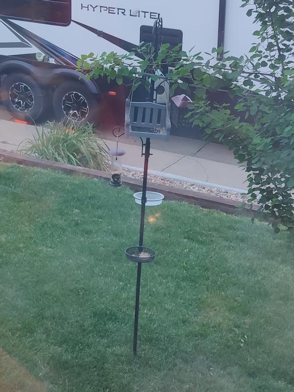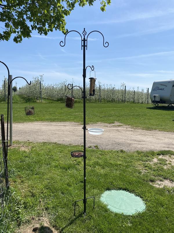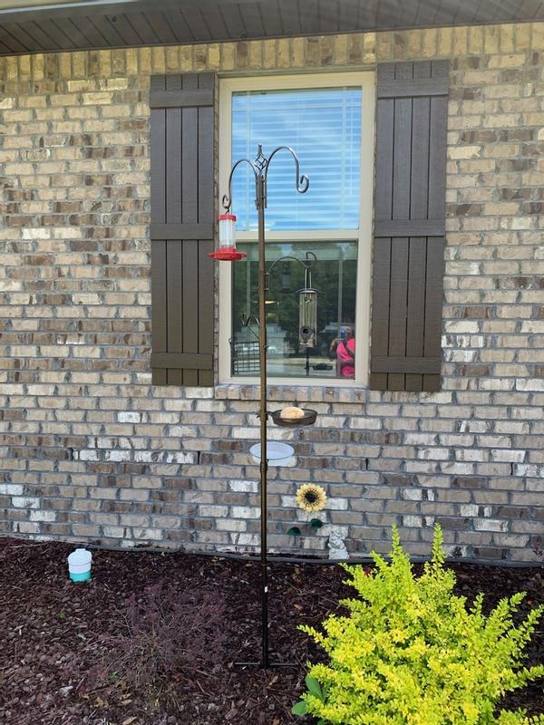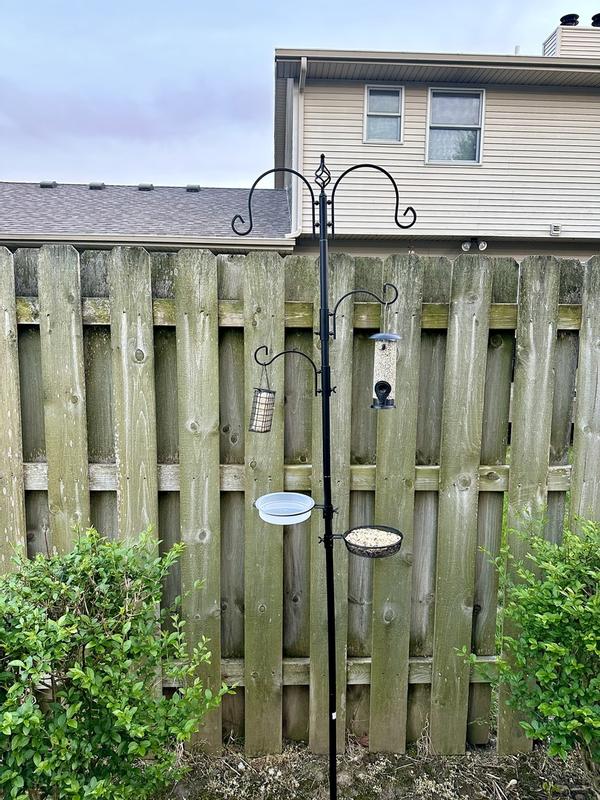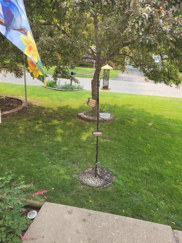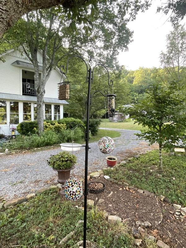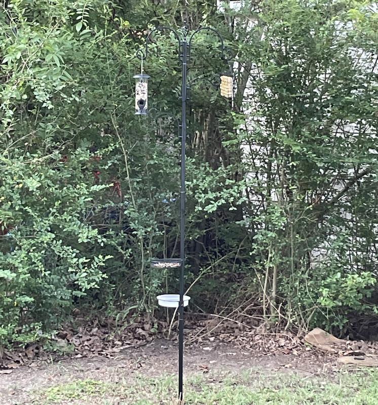 I absolutely this bird feeder! I can hang all my bird stuff on one feeder and it looks so good. Instead of putting mine in the ground, I decided to hang it from my deck where I can see it better from my sunroom. I thoroughly enjoy seeing all kinds of birds - including hummingbirds - eat from it. It is well made and easy to assemble. I even bought one for my sister.