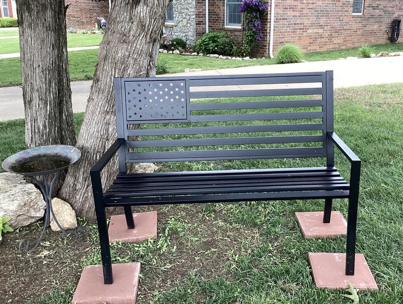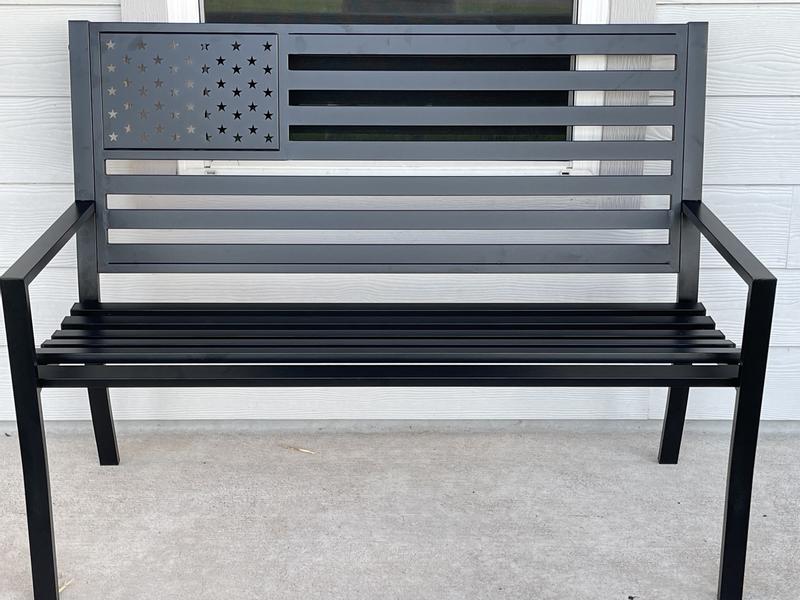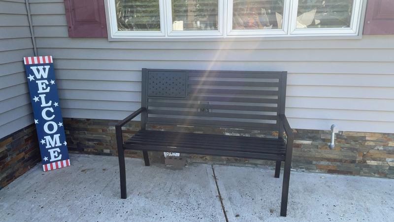 These benches are so nice and sturdy. The black color makes them look nostalgic and classy. They have such a clean look to them, and are easy to assemble. I couldn’t stop at one, so I had to purchase two! With my American Flag flying in front of my flag benches, and the colonial look of my house, it makes me feel patriotic all year around! I would recommend these benches to anyone looking for porch benches!