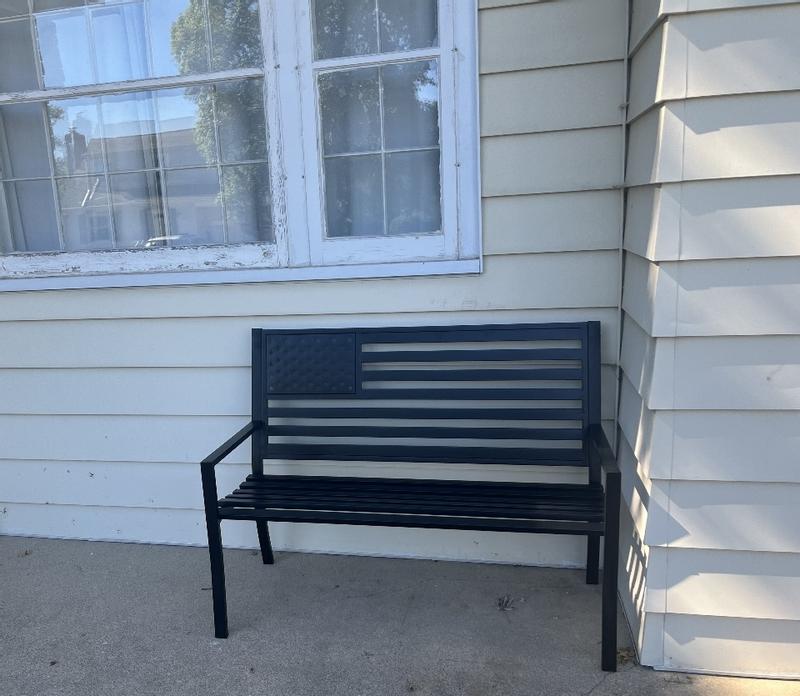 Indoor Outdoor Steel Garden Bench w/ American Flag Backrest, 790lb Capacity