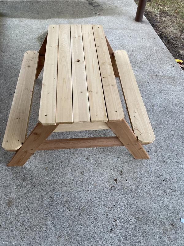 A little disappointed. I was so excited for this table and it’s an okay quality. But the stain was a completely different color than the one in pictures. The table smelt terrible when it first arrived. Lastly I’ve had it set up for a week and the wood is already chipped or splintered in several places.
