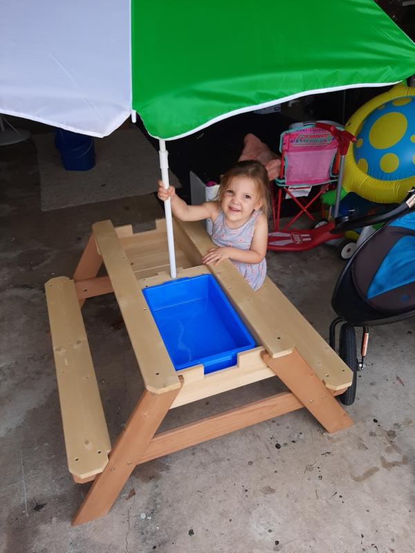 Kids 3-in-1 Outdoor Convertible Activity Sand & Water Picnic Table w/ Umbrella