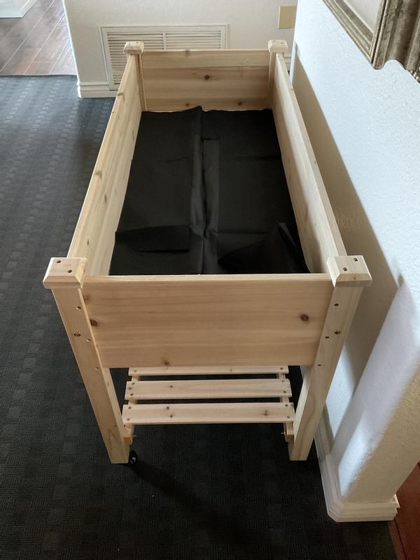 This raised planter is great quality. I was surprised that the entire thing is made of real wood.