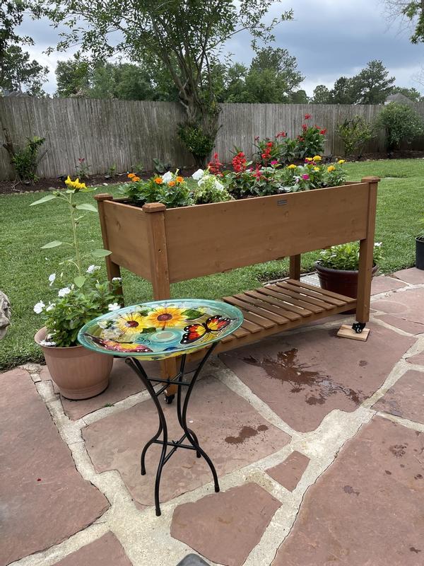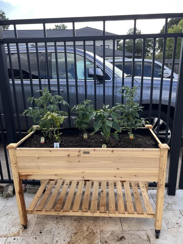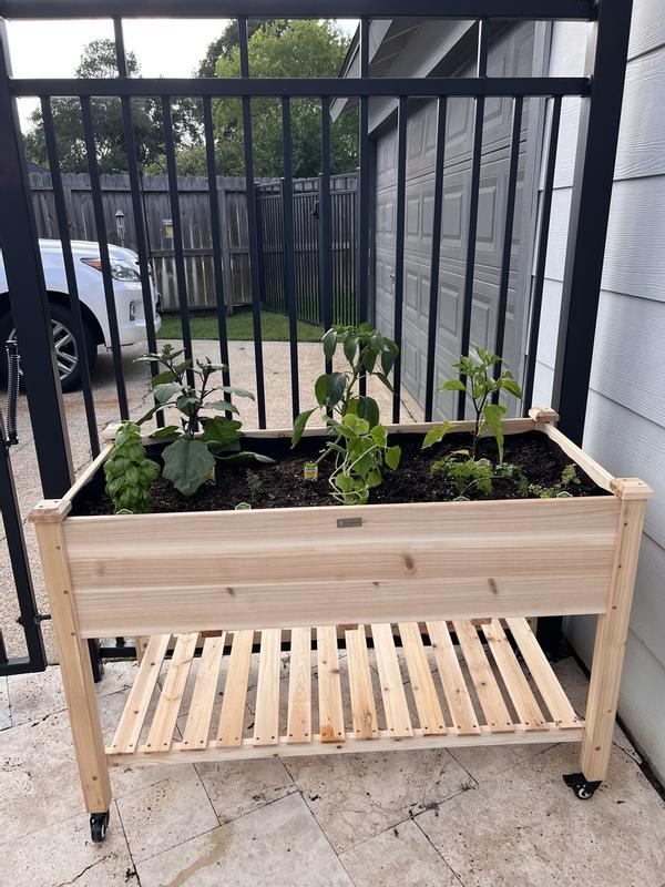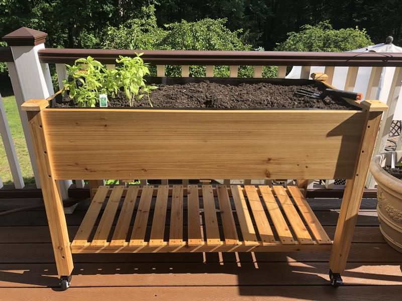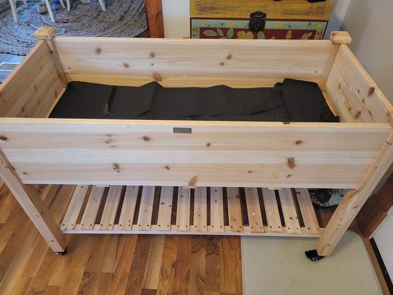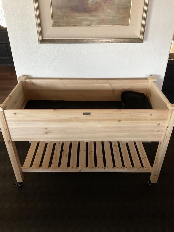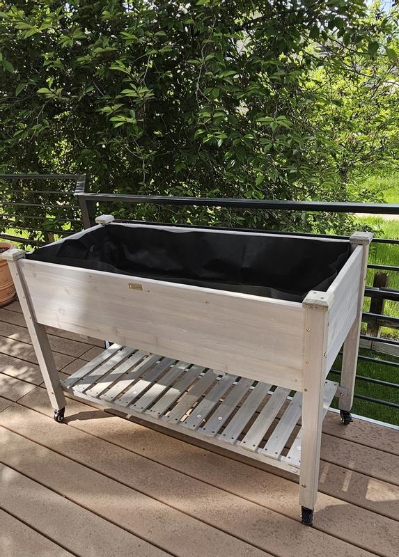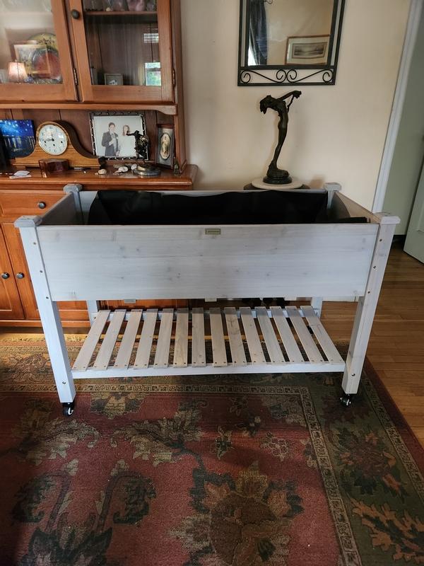 I bought this to grow few veggies and I think it will work out well. I like that it has casters with brakes so I can move it. I like that it has a liner for the dirt and holes in the bottom for drainage.