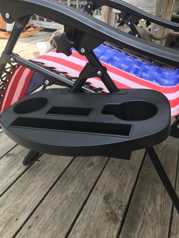 Great chairs for lounging on the deck, light weight, a tray to fit everything, why get up? Love them!