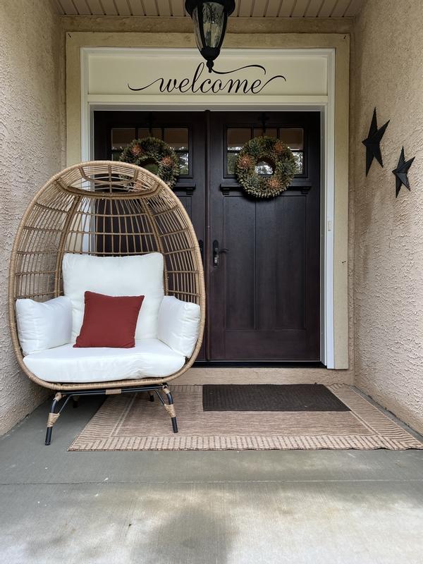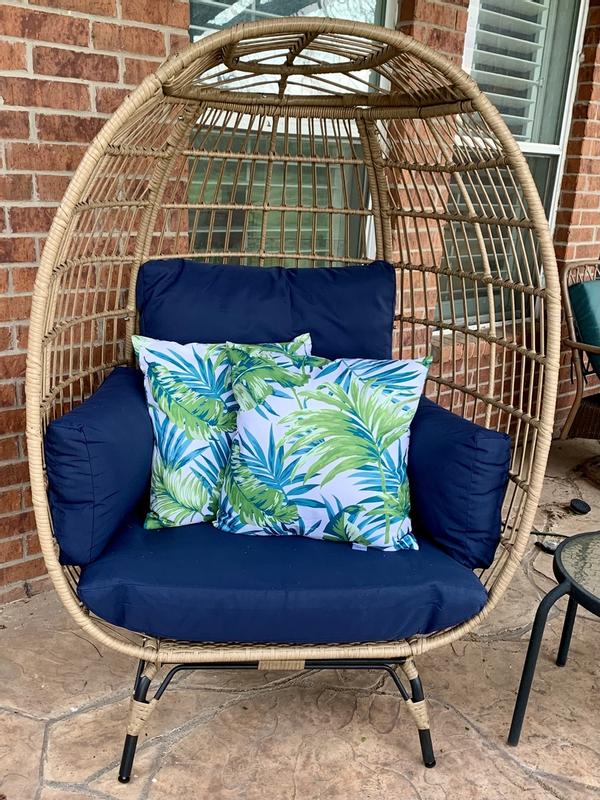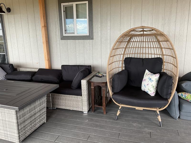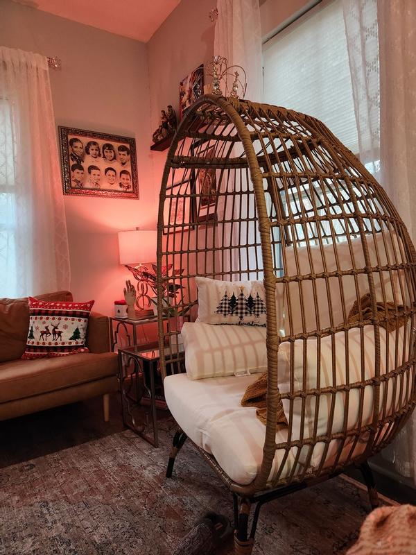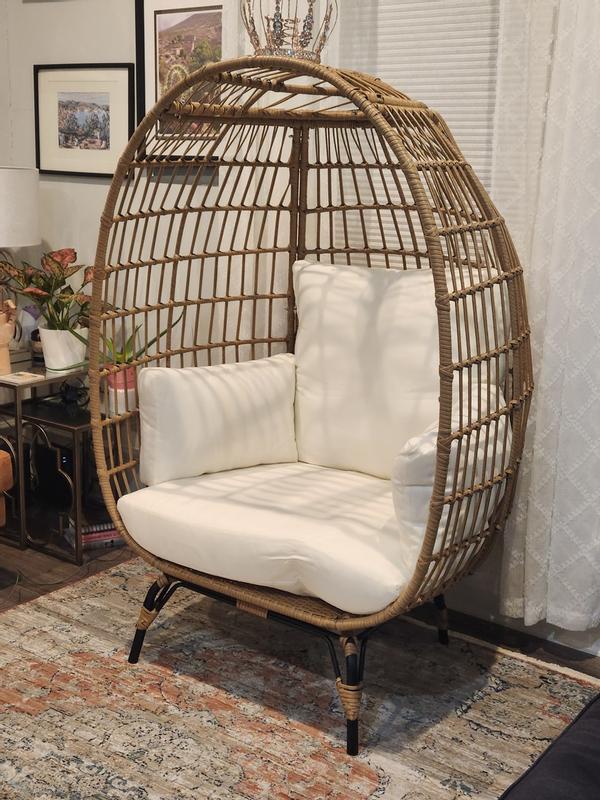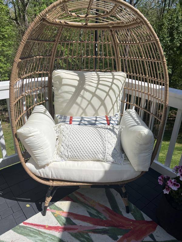 Wicker Egg Chair Oversized Indoor Outdoor Patio Lounger w/ Steel Frame, 440lb Capacity