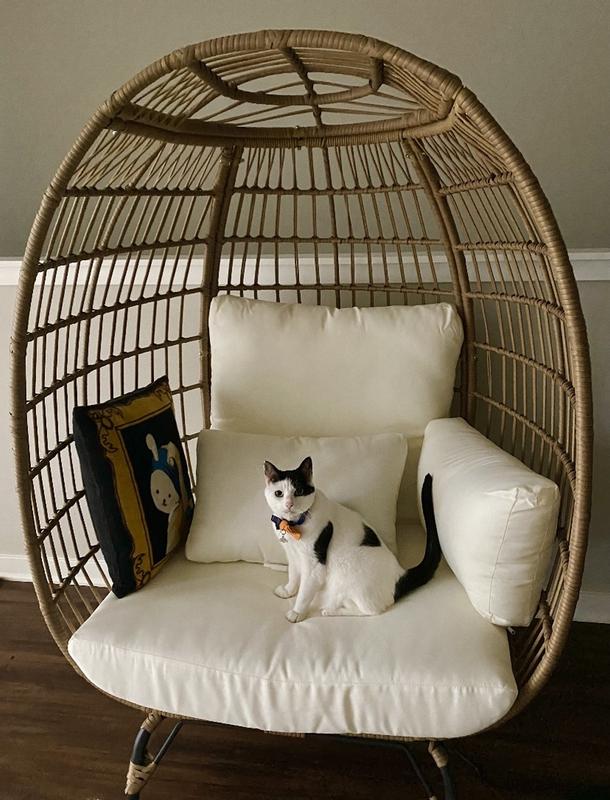 We have nicknamed the chair “THE EGG”! Fantastic piece of furniture. Well built chair and weight limit tested and approved! Solid. Beautiful. Comfortable. Stylish. BOOM!