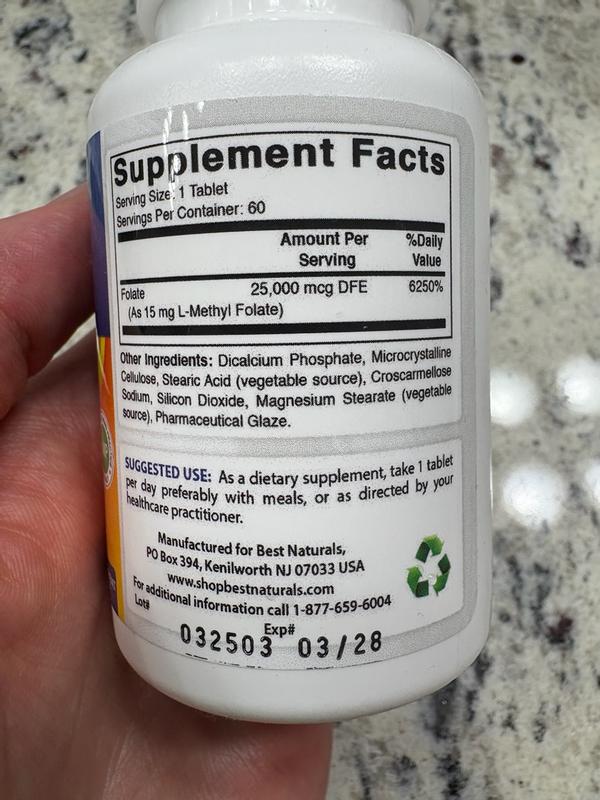 This l-metalfolate premium formula from Best Naturals is easy to take easy to swallow pill that I feel good about having as part of my daily regimen. Not only does it help people with vitamin B deficiencies, but it also can have a positive impact on your mood. It feels great to know this brand does 3rd party testing and you can feel secure that the ingredients are clean and the supplement has the amount of the vitamin you need, and all for a great value.