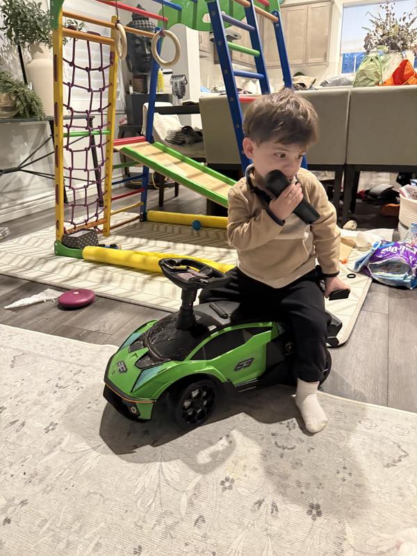 Web ID: 16506626Officially licensed Lamborghini SCV push car is suitable for kids from 12 months to 3 years old. It comes with under the seat storage, a steering wheel sturdy back rest.